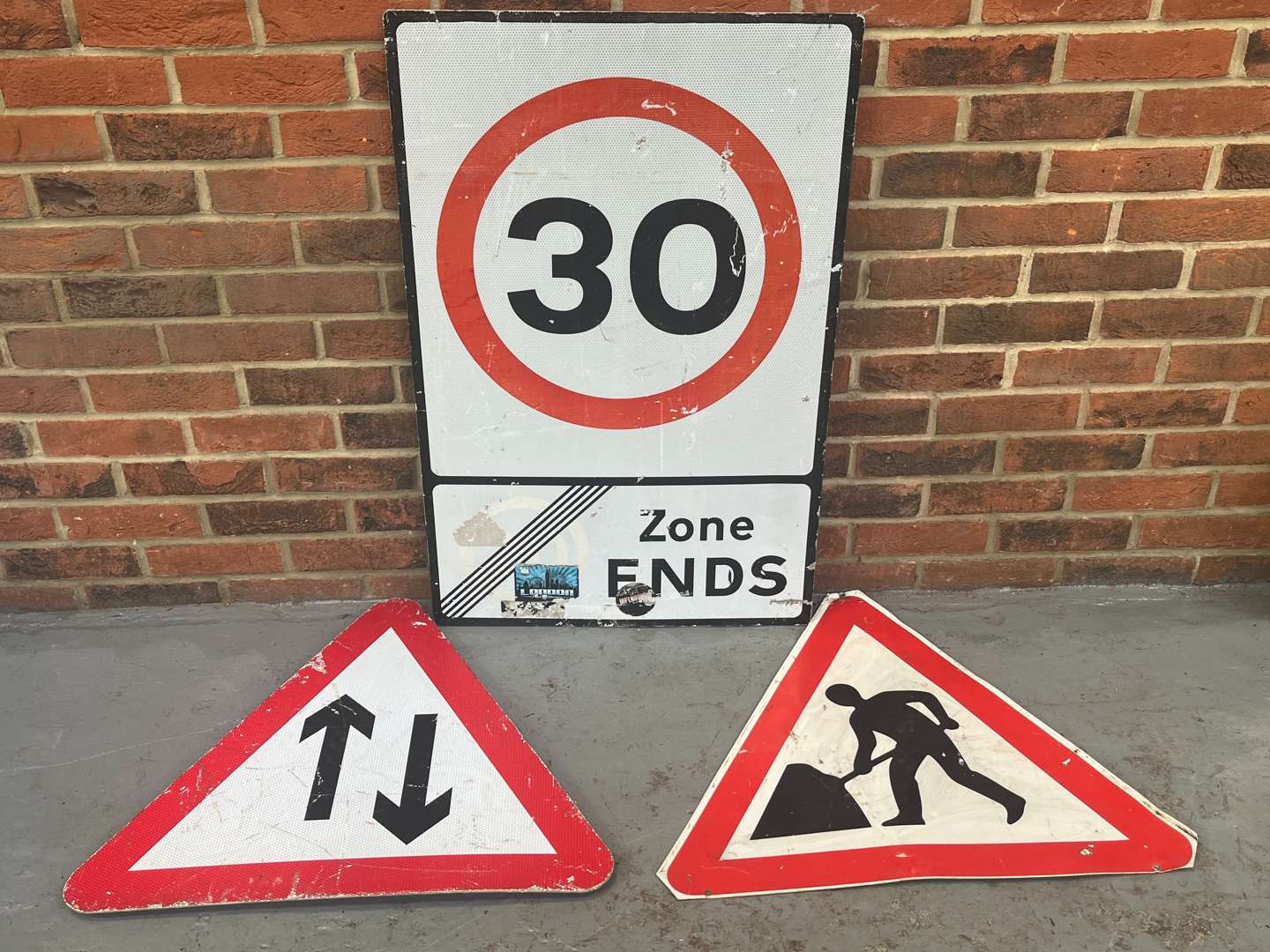 30MPH Zone Ends Sign and Two Road Warning Signs