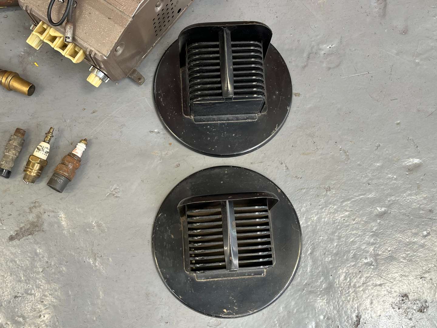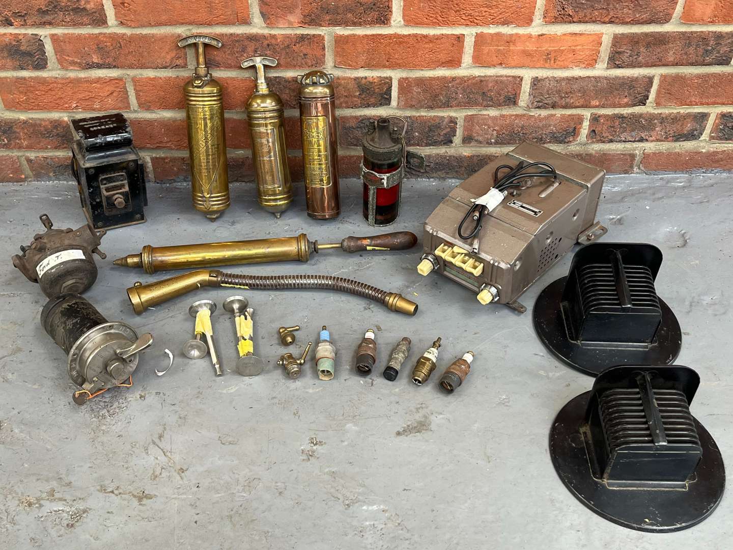 Mixed Lot Fire Extinguishers, Black Out Light Covers Model T Carburetor Etc