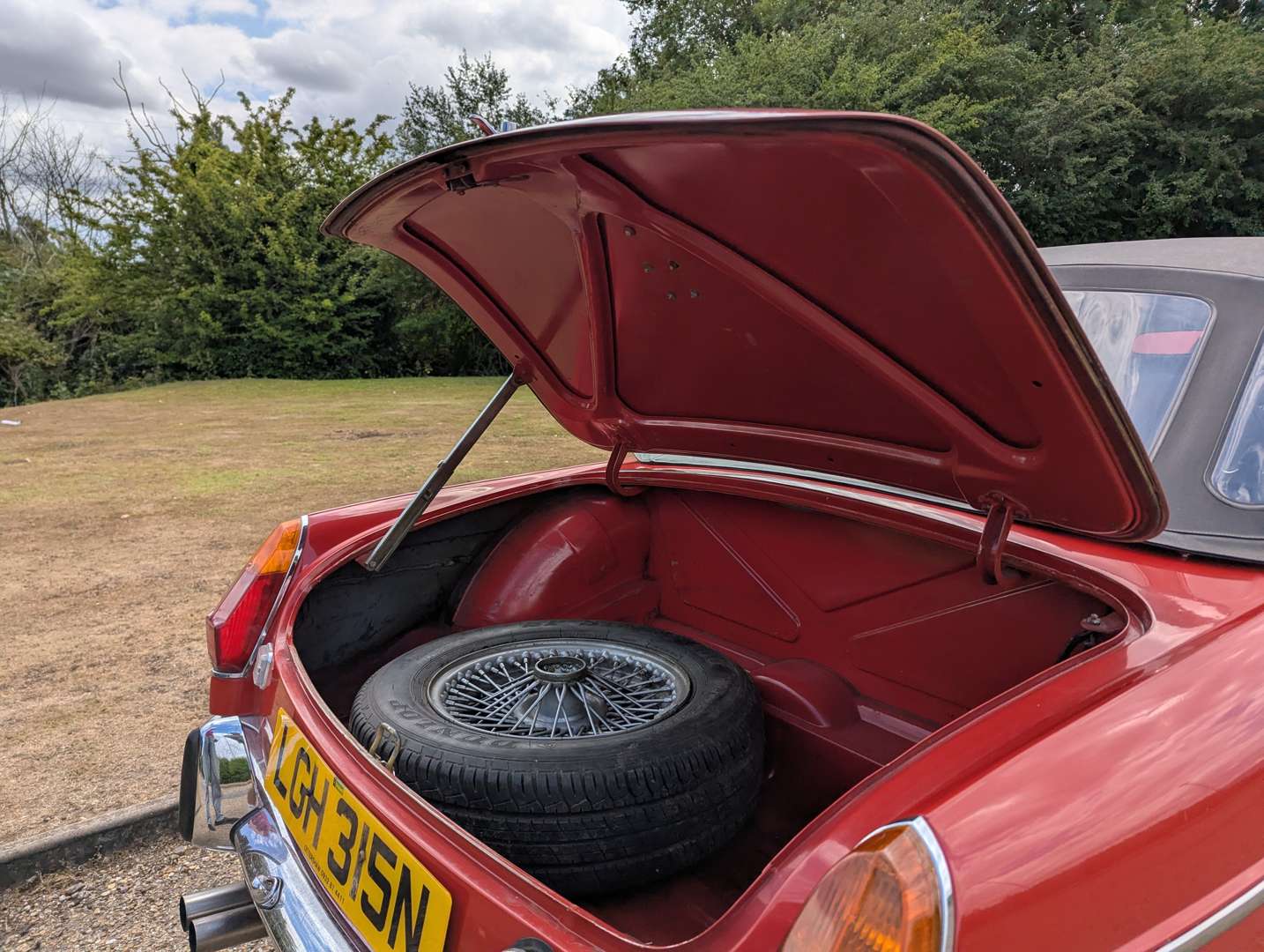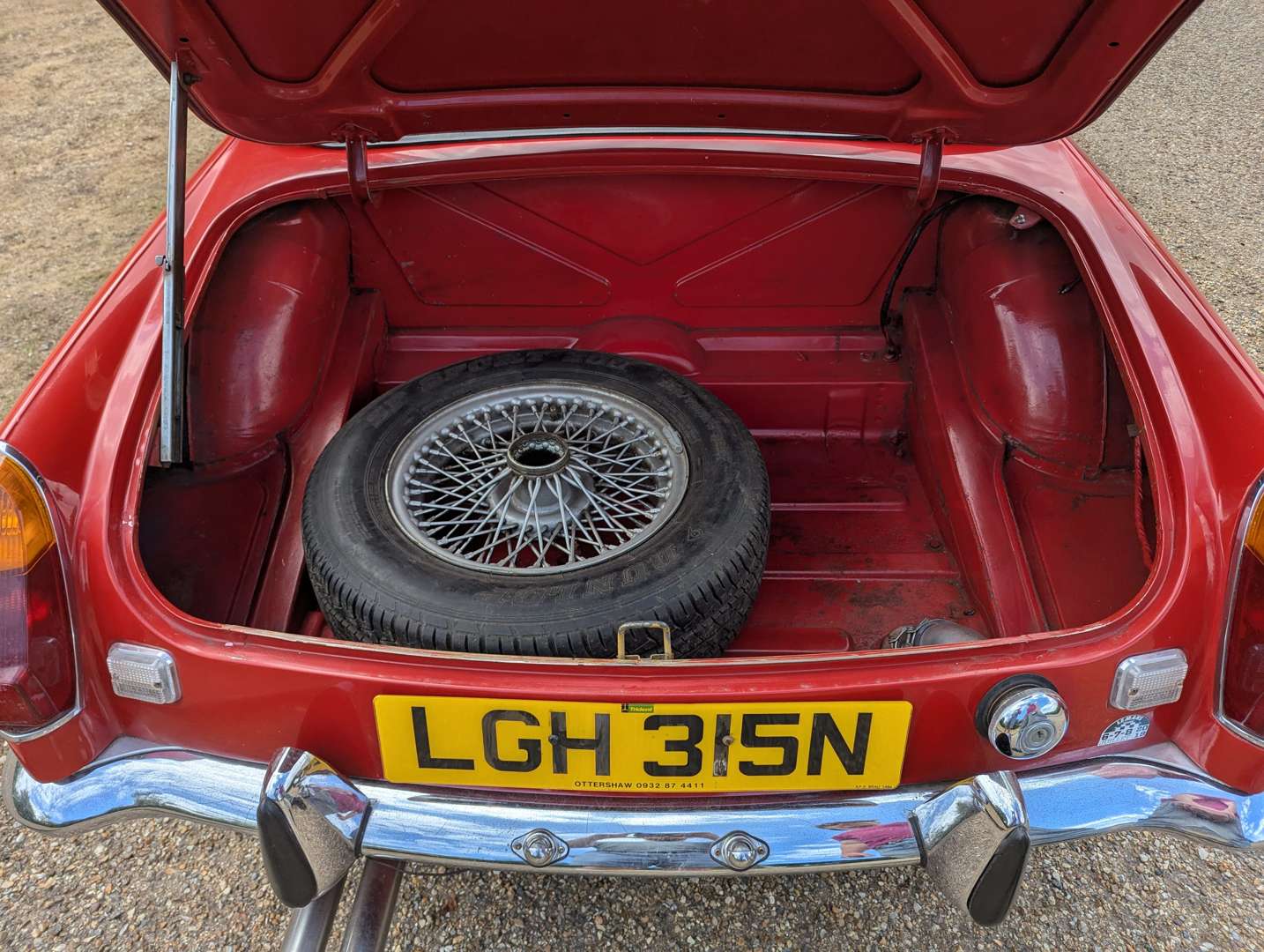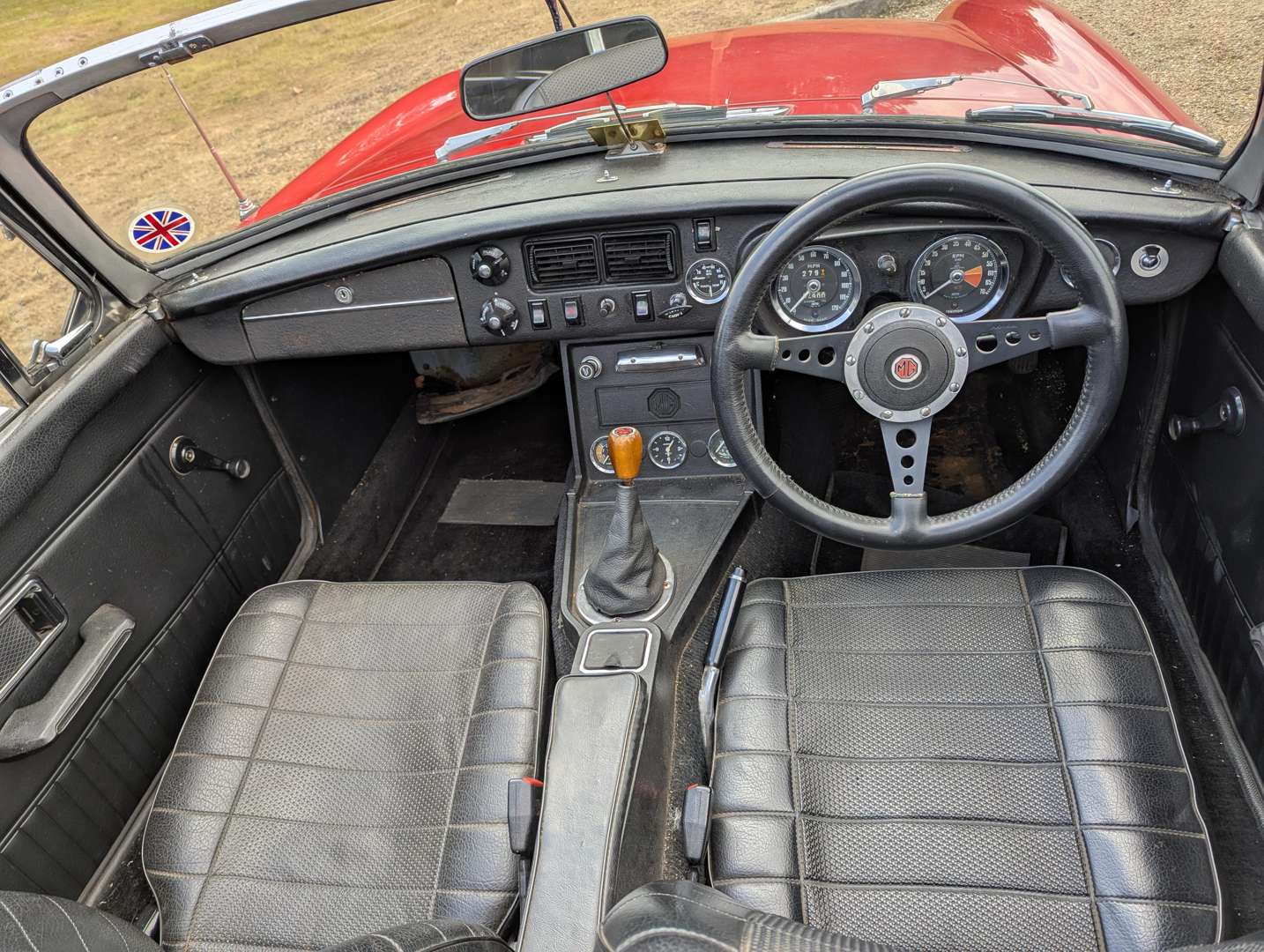 This chrome bumper MGB was first registered on 16th September 1974 and comes with an MOT to May next year. The Tartan Red paint is in presentable overall condition, and the car wears a couple of stickers from the 2018 Le Mans Classic. Its history includes a good selection of receipts going back to 1990, with evidence of a gearbox replacement in 1993. You will also find a BMIHT Heritage Certificate confirming that this car left the factory on 22nd April 1974 as a Home Market model with overdrive and Harvest Gold paint. A battery cut-off switch is installed behind the driver's seat.