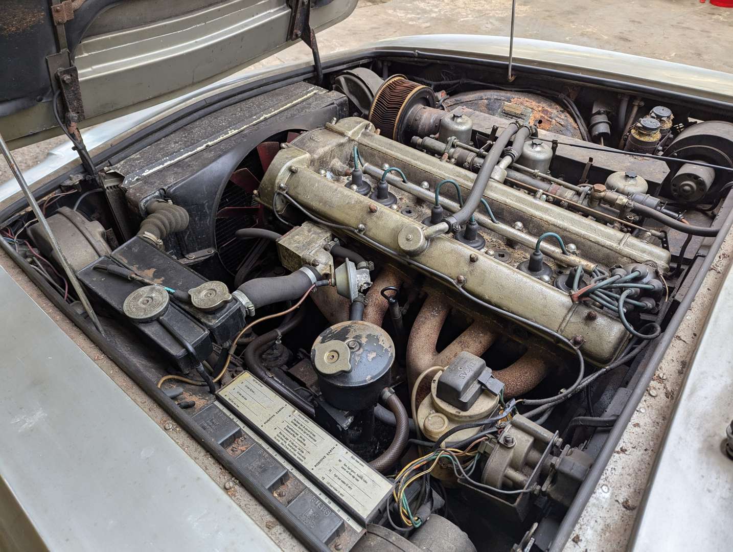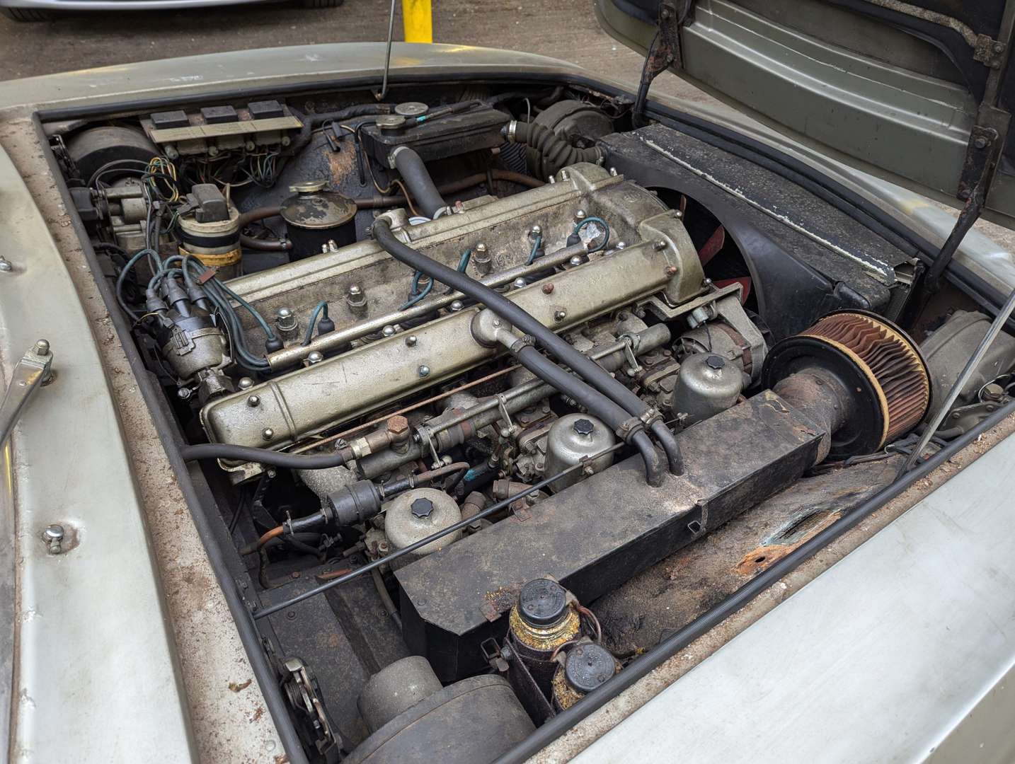 This 3995cc 1970 Silver Birch Aston Martin DBS 6 is a ‘barn find’ car, believed to have last been driven in 1979 and then garaged at home until 2012 when it was moved to a purpose-built car storage facility. The registered keeper has now passed away and the car is being sold as part of his estate. A replacement ignition key has now been sourced and is here at ACA. There's no V5C, so one will need to be applied for although the registration number CJW 953H is still live on DVLA. The only other paperwork is a new Aston Martin Heritage Trust certificate, a copy of the original build sheet, record of work carried out by Aston Martin between July 1970 at 8225 miles and January 1972 at 21,622 miles, a couple of old petrol receipts and a 1979 tax disc. The car, which shows 64,333 miles on its odometer, is believed to have had two keepers overall and was registered in January 1970.