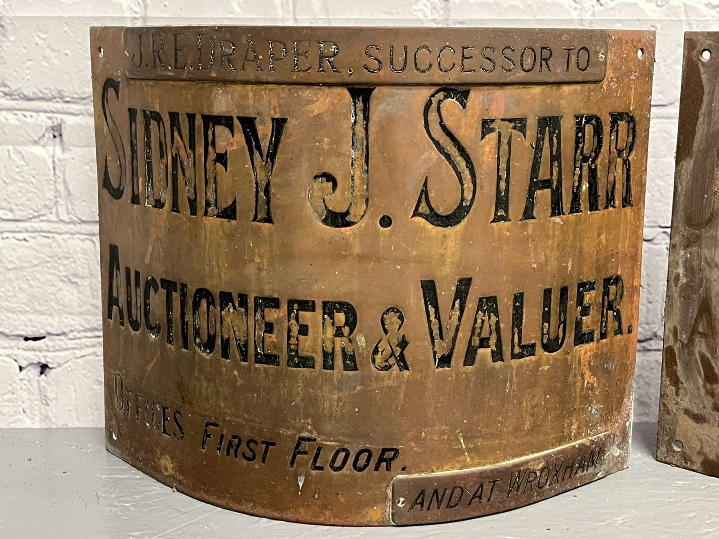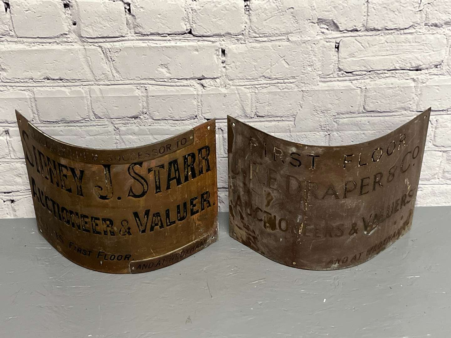Sidney J Starr & JRE Draper & Co Auctioneers and Valuers Brass Signs